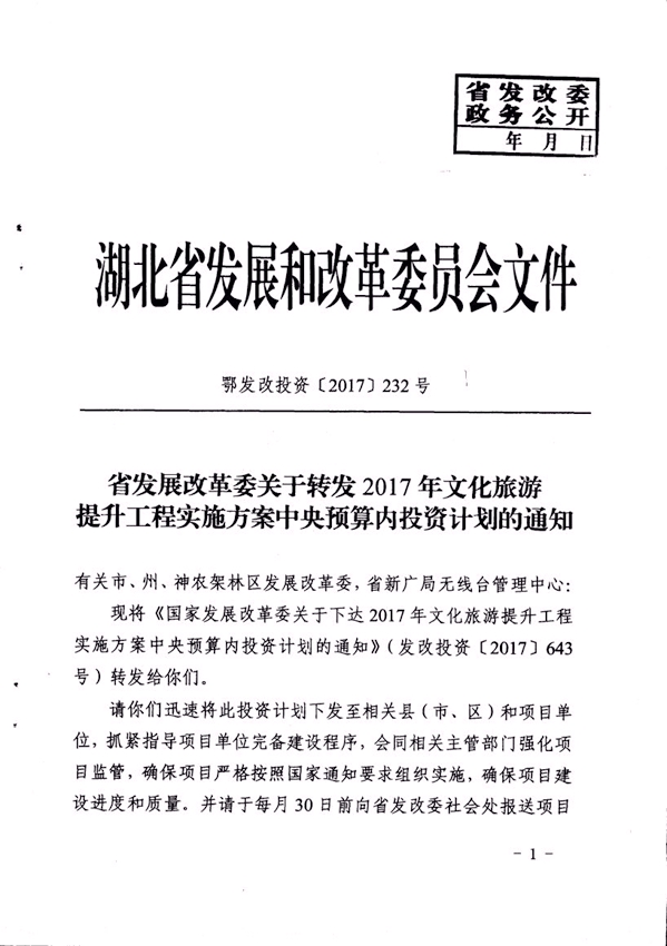 省發(fā)改委關(guān)于轉(zhuǎn)發(fā)2017年文化旅游提升工程實(shí)施方案中央預(yù)算內(nèi)投資計劃的通知