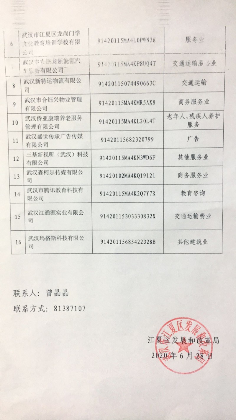 關(guān)于2019年度江夏區(qū)服務(wù)業(yè)“小進(jìn)規(guī)”入圍企業(yè)名單的公式