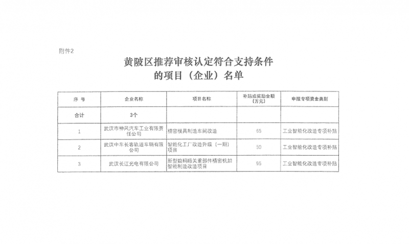 黃陂區(qū)推薦武漢市2021年工業(yè)投資和技術(shù)改造 審核認(rèn)定符合支持條件項目(企業(yè))名單公示
